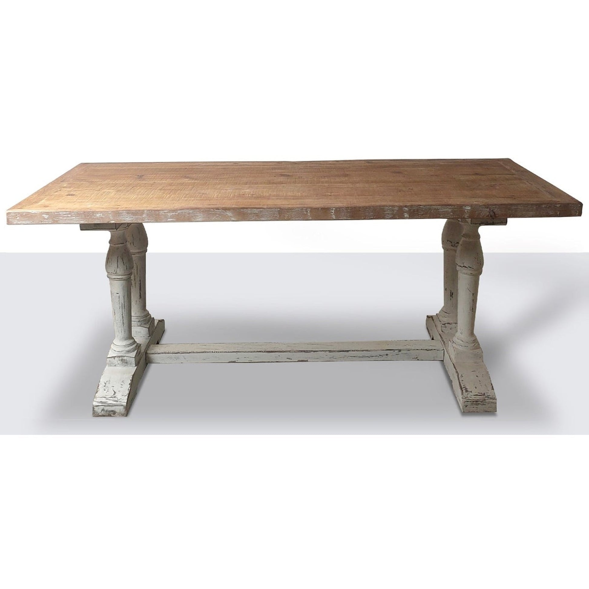 Table de salle à manger courte en vieux pin recyclé, finition blanc rustique