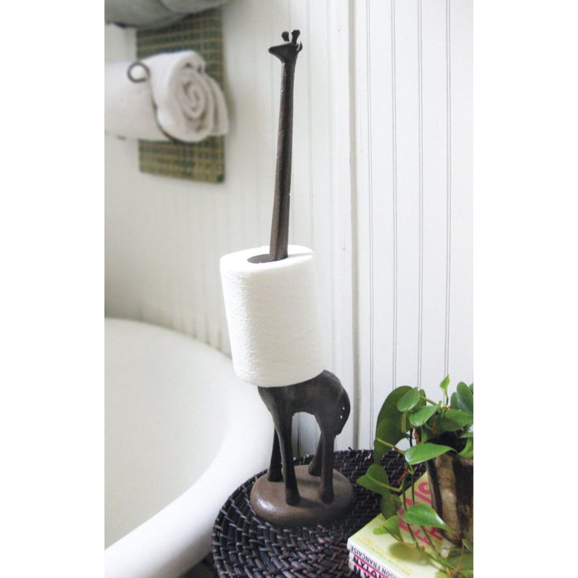Giraffe Toilet Paper Rack, Rustic Brown, Cast Iron