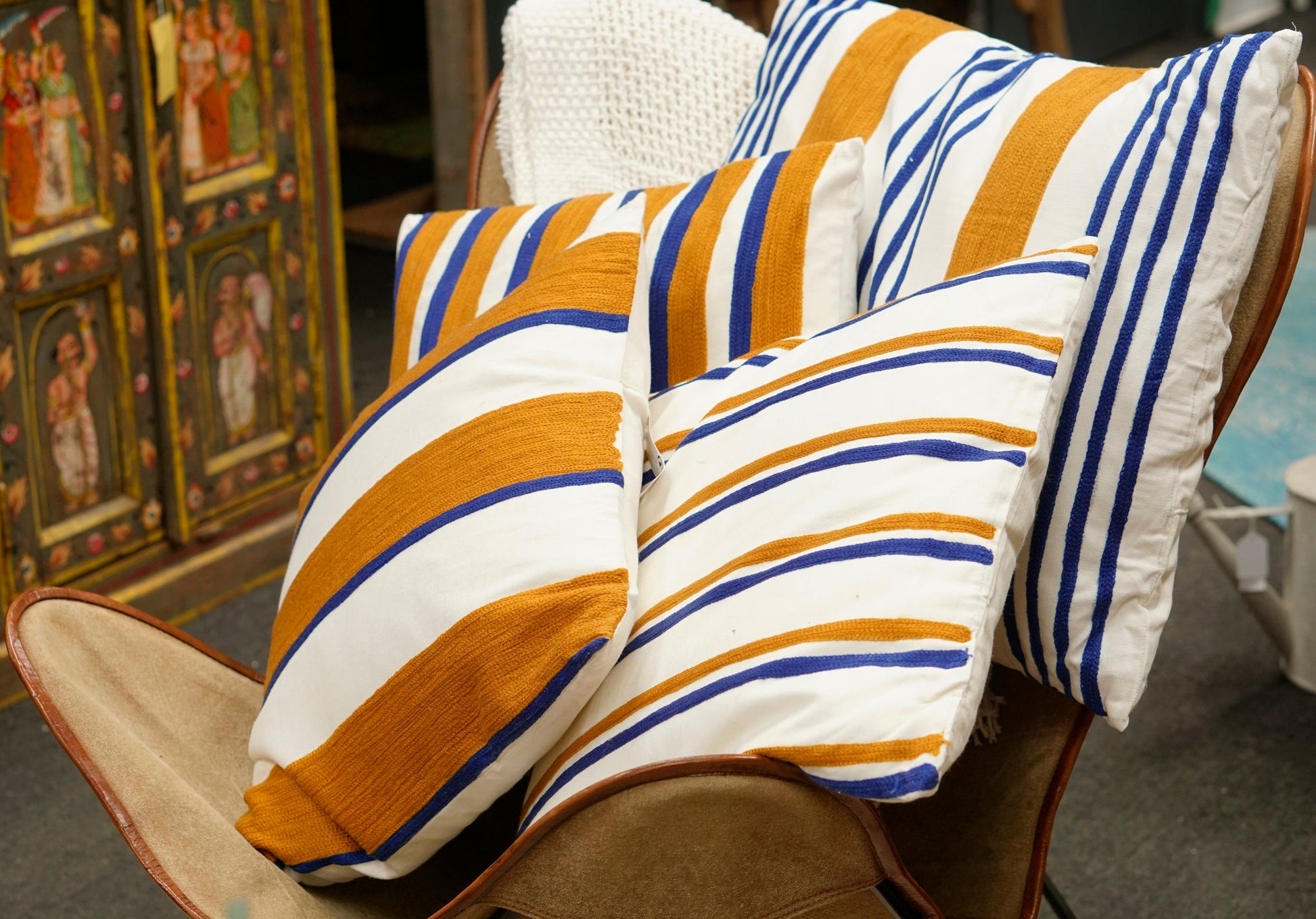 A35833040 Coussin à rayures, 3 assortis, Inde, 17,8 x 23,7 po