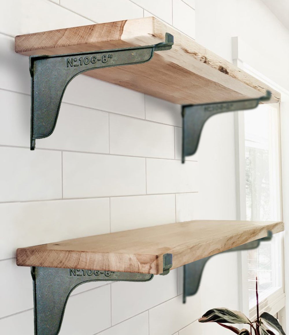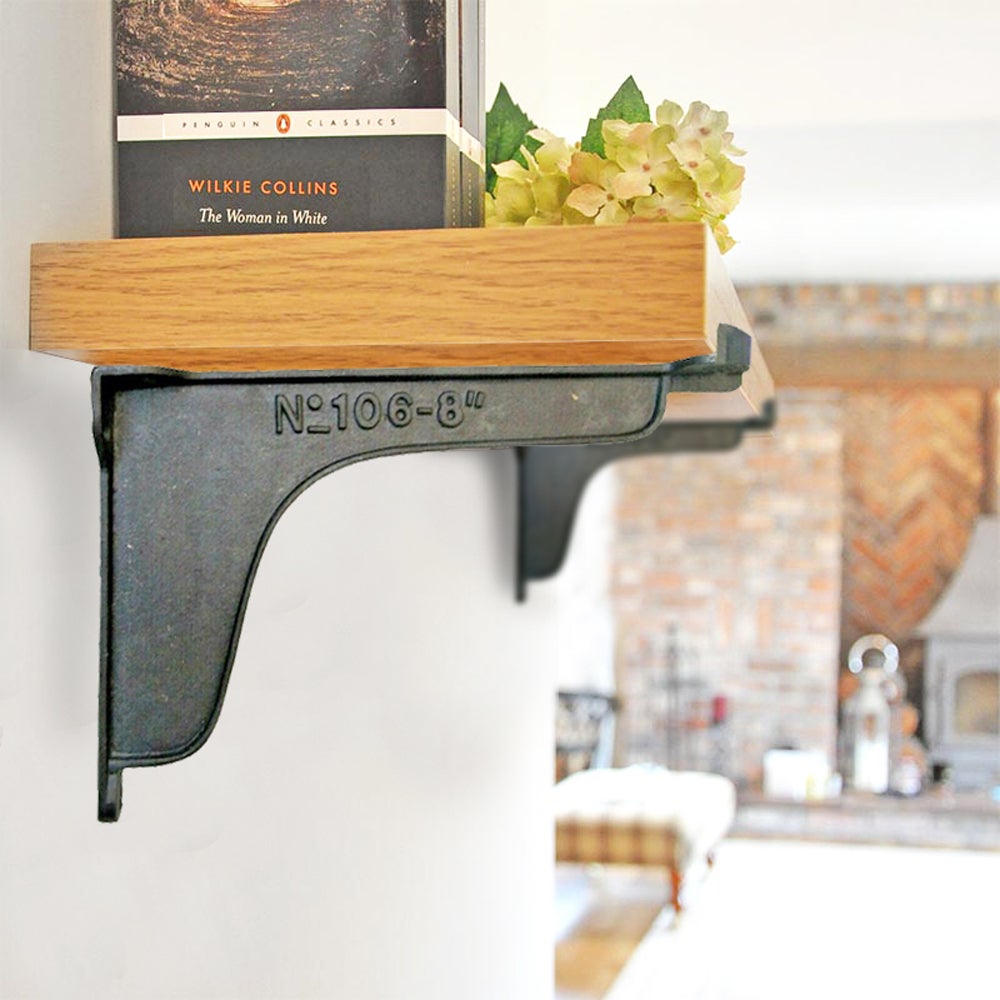 Support de rail industriel, support d'étagère robuste, « RAILWAY NO.106-8 », 8 x 5 po, métal antique