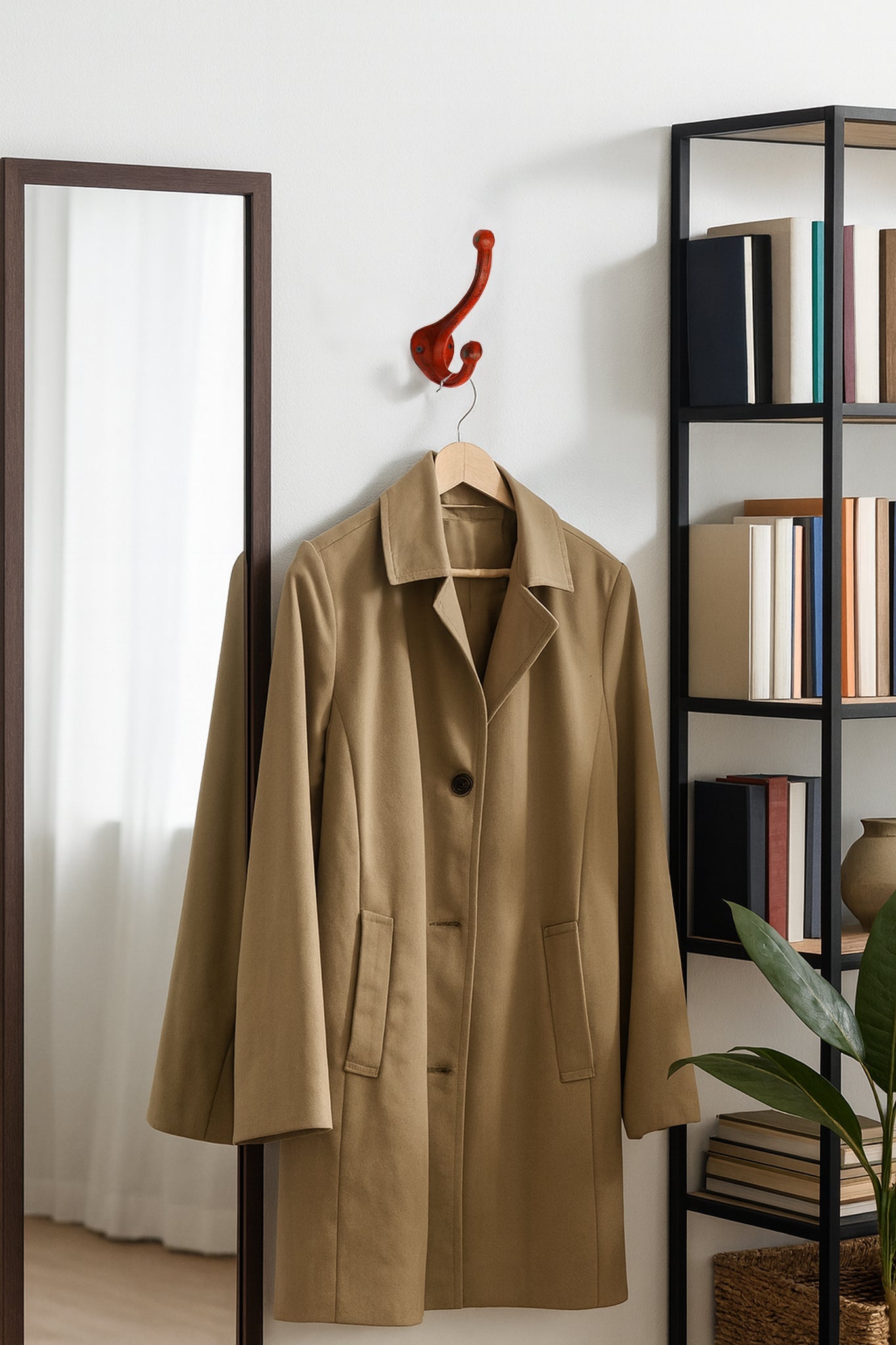 The Ancha hook is a stylish accessory for any home, offering wall storage solutions both indoors and out. Made from durable cast iron with an antique red finish, this hook is sure to last. With dimensions of 1.5x2.9x4.3 inches, the double hook design provides enough flexibility and strength to securely hang items of all sizes.