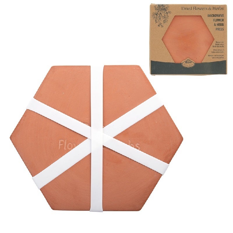 Drying flowers in the traditional way can take up to three weeks. This terracotta microwave flower press will dry flowers and herbs within minutes. An advantage of drying flowers in this way, is that the colours are preserved better.- dries flowers in two minutes- coloursof the flowers are preserved better- set includes 2 layers of terracotta, 2 layers of filt and 3 silicon loopsFlower & herb press micro wave, 7.7x6.8x1.3 in, Item Weight: 2.3 lb