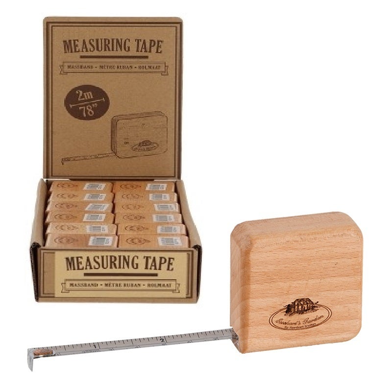 This timeless and natural measuring tape is easy to use and has a natural appearance due to the wooden housing.- 2 meters long- wooden housing- easy to use- packed in a table displayWooden measuring tape, 1.9x0.8x1.9 in, Item Weight: 0.2 lb