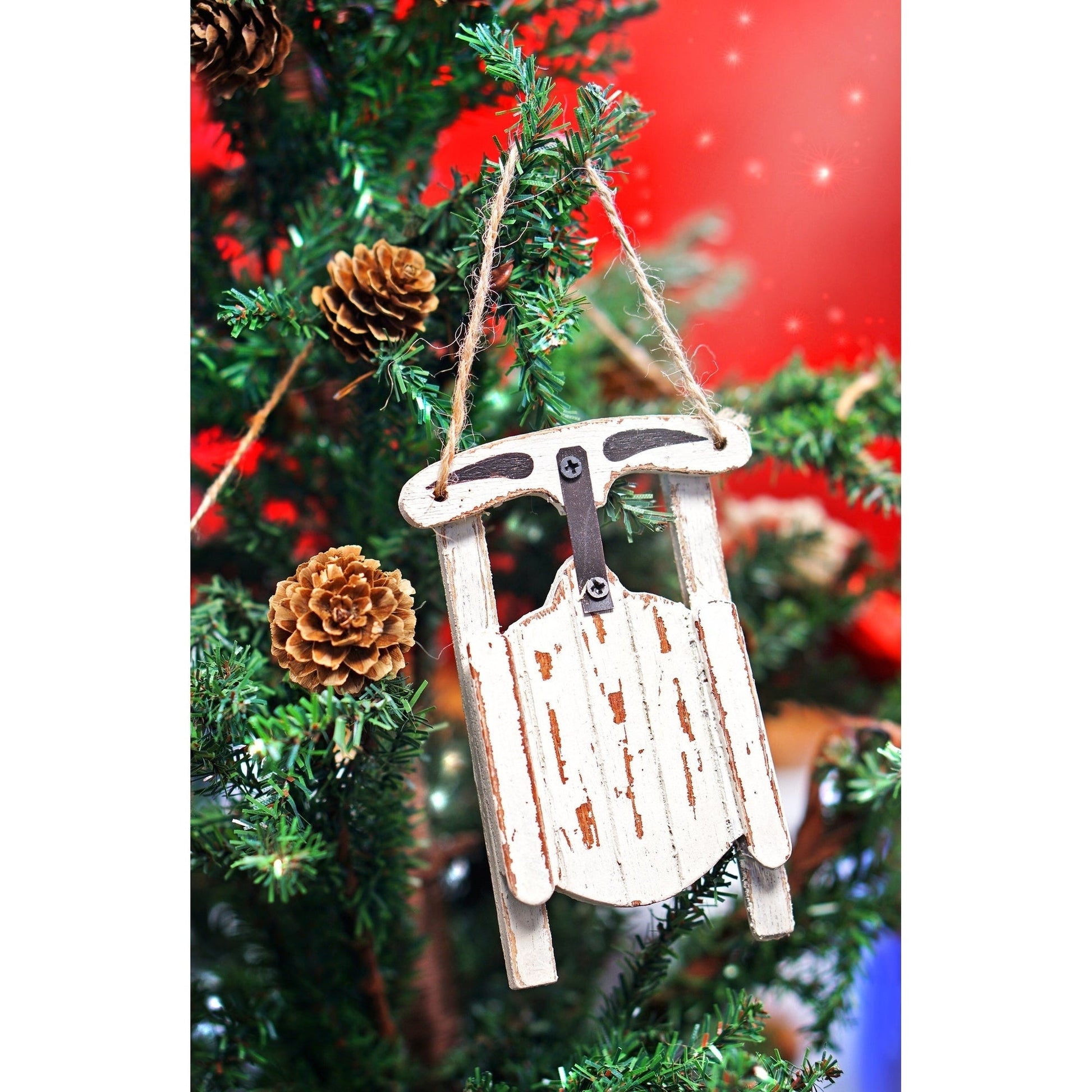 Wood Sled Ornament, Distressed White, Wood, China, On Sale 30% Off