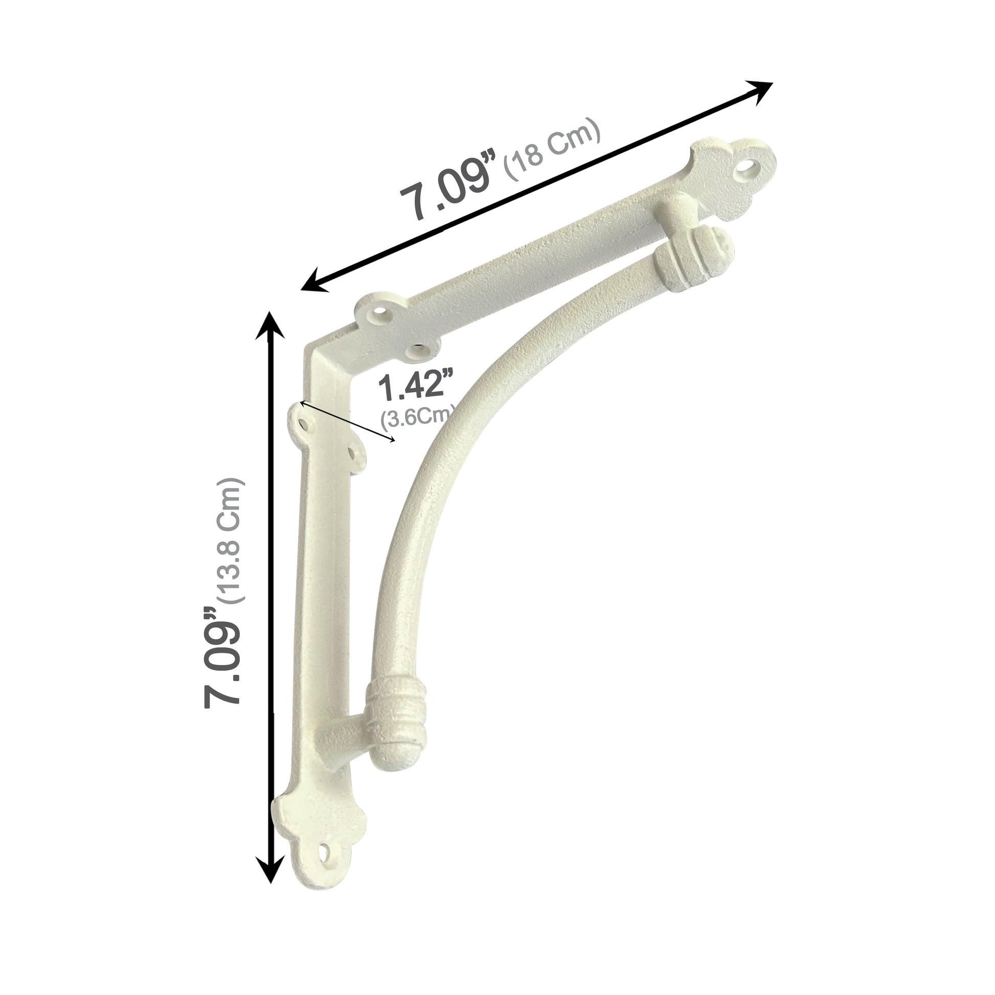 The Half Round Wall Mount Shelf Bracket is a medium-sized 1x7x7 inch accessory perfect for securely mounting shelves to the wall. It is made of reliable cast iron and finished with an elegant antique white, offering a classic aesthetic that will compliment any interior or exterior.