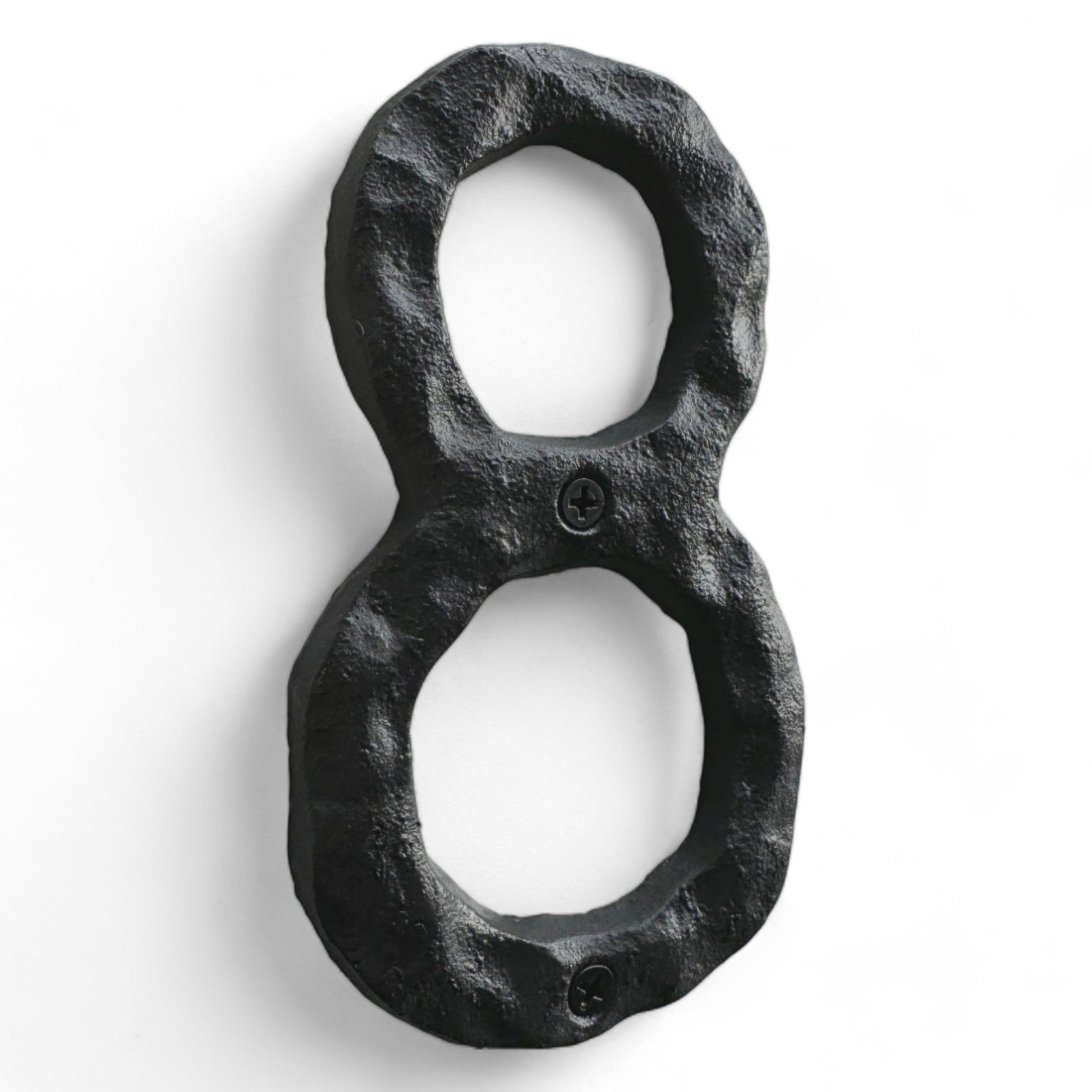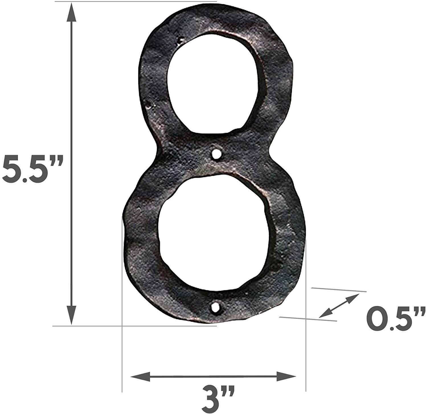 This rustic address number 8 is the perfect addition to your home! Hand-forged from solid cast iron, this 5.5 inch sign has a unique rustic style and will add a hint of character to your home's exterior. The sturdy design ensures a long-lasting life for years to come.