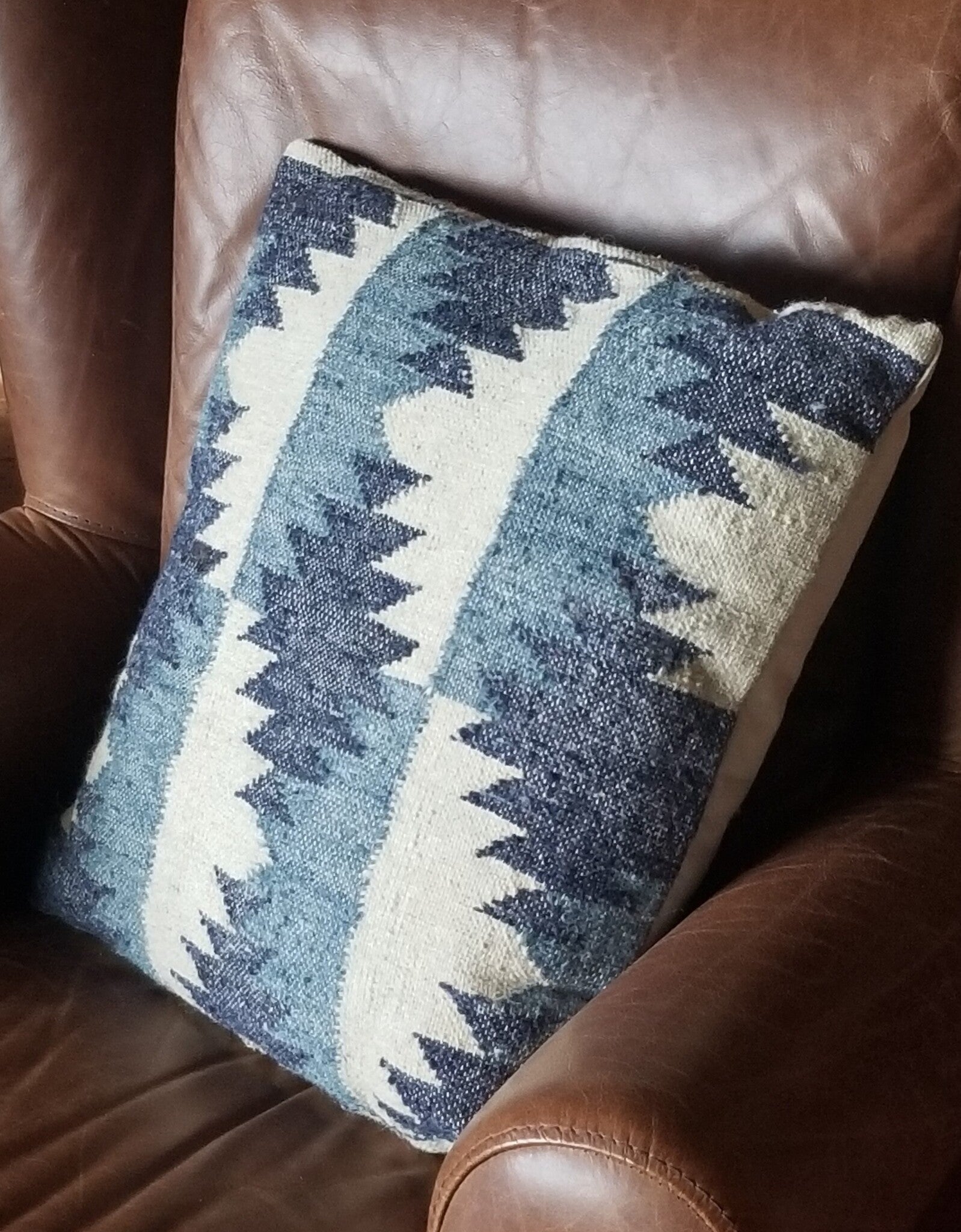CUS-NVC11 Hand Woven Wool Cushion, 17.7x17.7in, Blue, Cover: Front: Wool, Back: Cotton, Polyester Filler, On Sale 10% Of