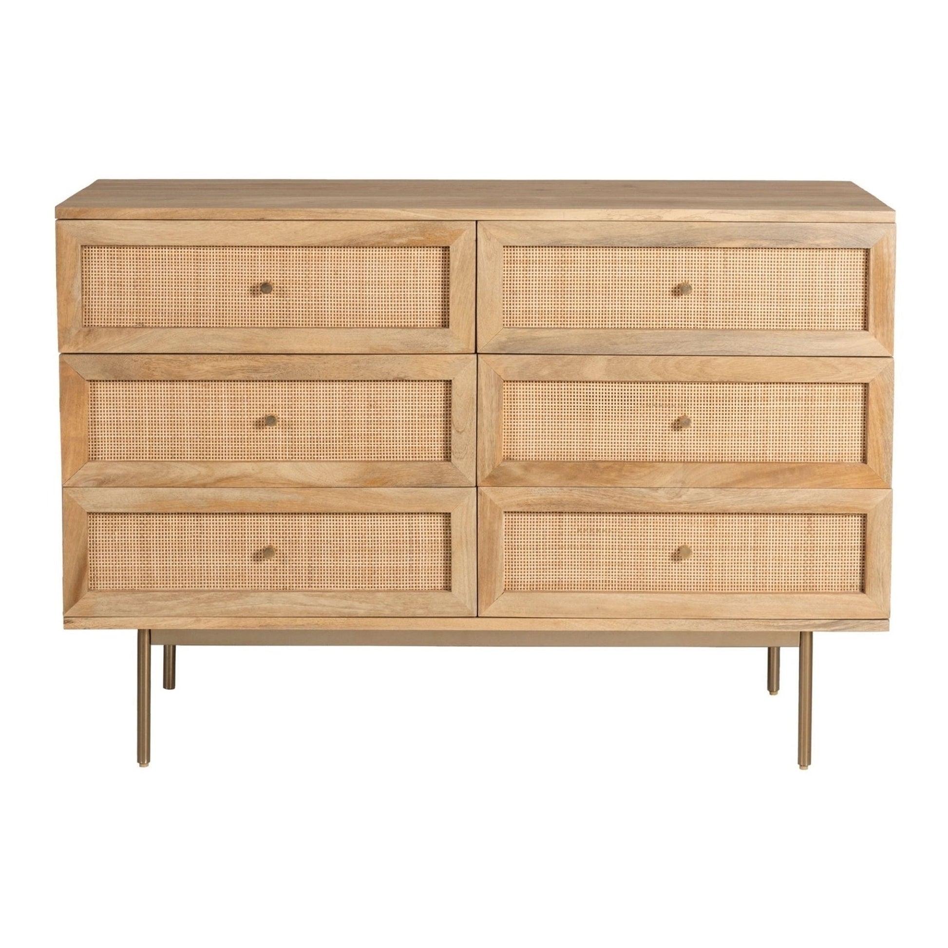 Raphia Wide Chest Of Drawers, 6 Drawers, Mango Wood + Rattan Cane + MDF, Natural,