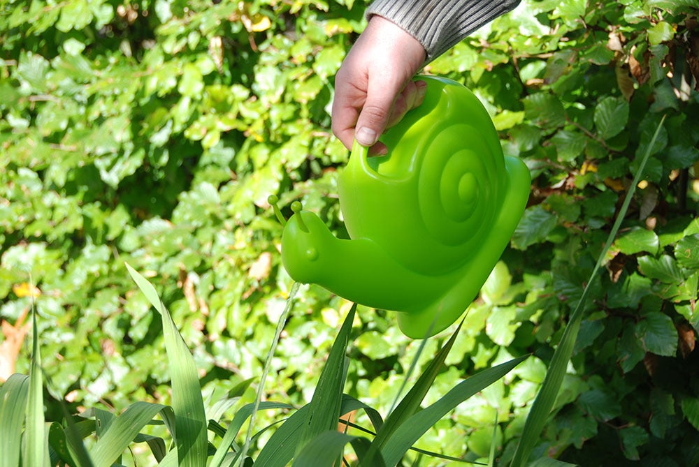 Snails can be found in any garden. This plastic watering can in the shape of a snail, with the snail shell functioning as the reservoir makes watering plants through the opening in its mouth is simple.Snail watering can, PP, Volume: 1.881 L